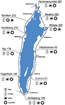 Fazit: Die Vaetternrundan ist ein perfekt durchorganisiertes Event. Gerade wenn man die Anzahl der Starter berücksichtigt. Man staunt über Wahl der Räder. Die Masse sind Rennräder, aber auch Tourenräder, Klappräder und Tandems sind auf der Strecke zu sehen. 2006 gab es 17712 Meldungen. 15259 Begeisterte sind gestartet. 427 Fahrer/innen kamen nicht ins Ziel. Auch wenn man wie ich alleine startet, man fährt nie alleine. Zu Smalltalks kommt es immer wieder. Es war nicht meine letzte Vaetternrundan!!! | ||||||||||||||||||||||||||||||||||||||||||||||||||||||||||||||||||||||||||||||||||||||||||||||||||||